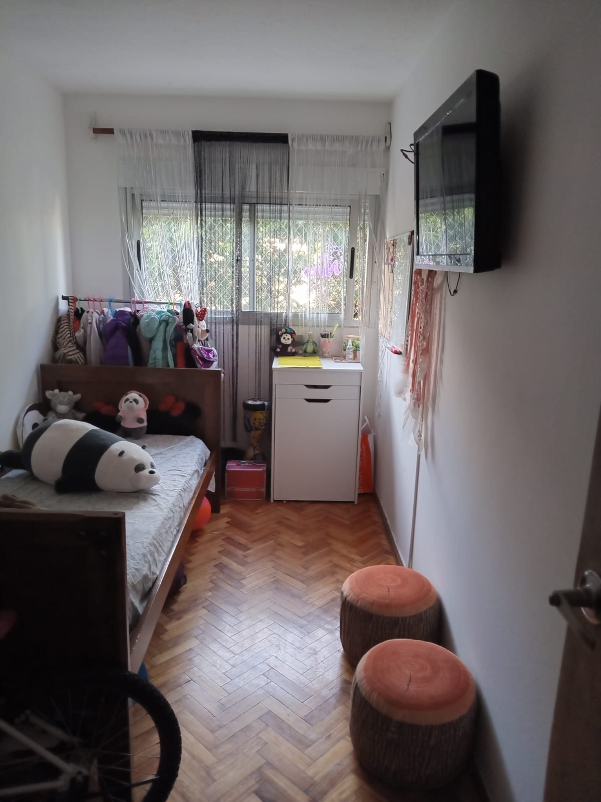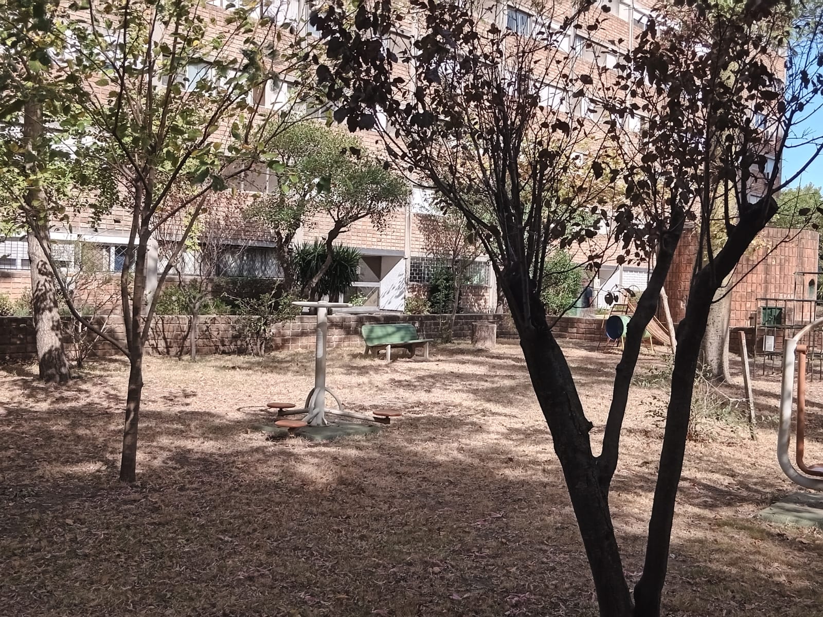 Edificio rodeado de verde con parrilleros , juegos infantiles y aparatos de gimnasia. Cochera por orden de llegada.