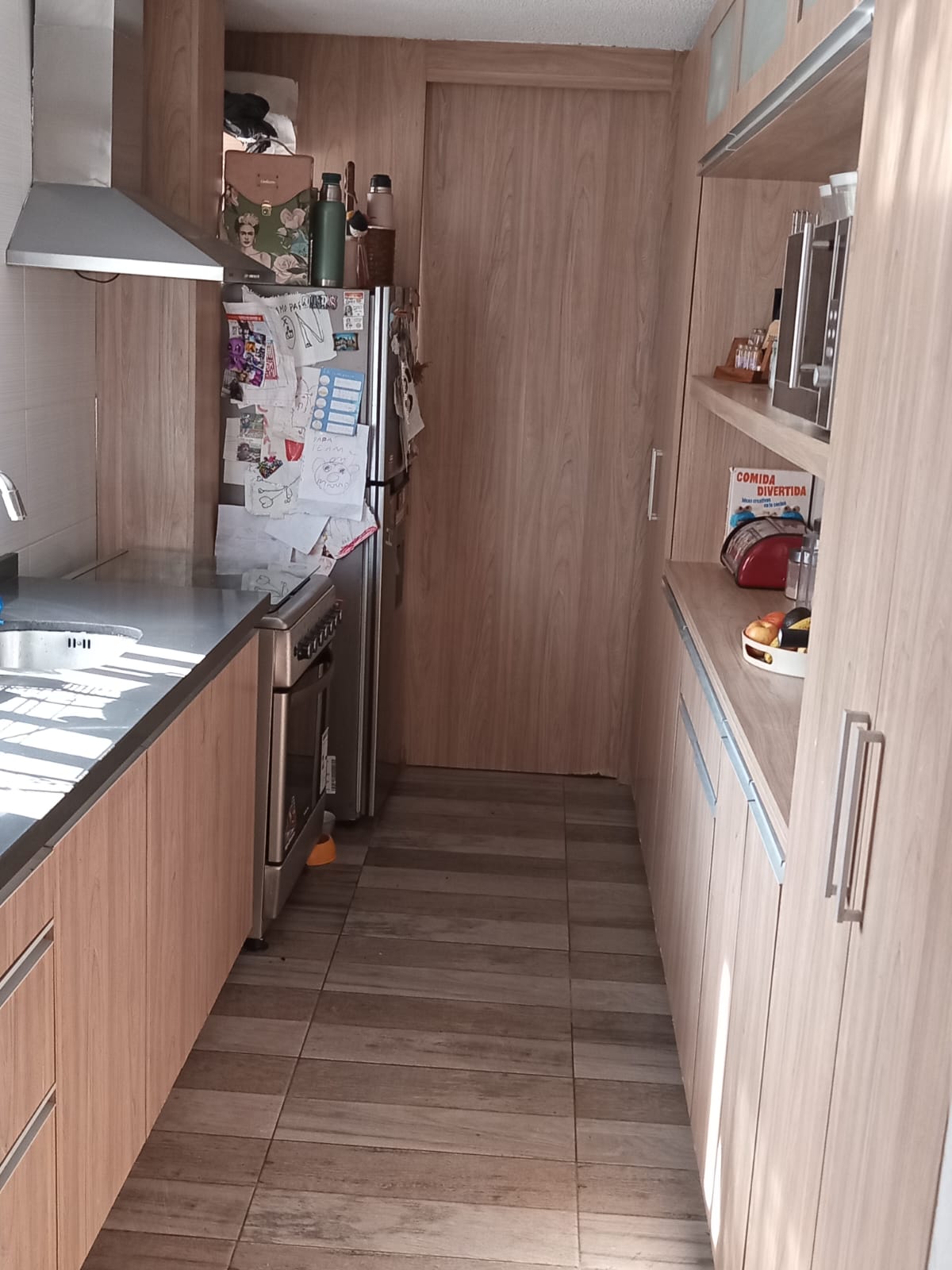Cocina definida , con placares aéreos y bajo mesada , despensa y terraza lavadero.
